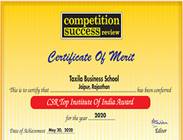 CSR Top Institute of India Award 2020” to Taxila Business School by Competition Success.