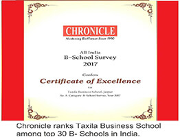 Taxila Business School ranked in top 30 Business Schools in India(year 2017)..