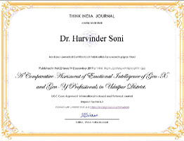 Dr. Harvinder Soni published a research paper titled "A Comparative Assessment of Emotional Intelligence of Gen-X and Gen-Y Professionals in Udaipur Disrict".