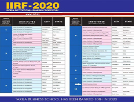 IIRF B School Survey 2020: Taxila Business School ranked among top Cluster Ranking 10th B School By IIRF in india.