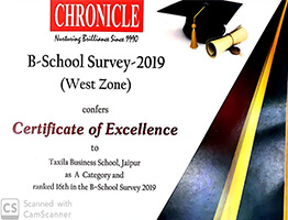 Taxila Business School awarded Certificate of Excellence by Chronicle (year 2019)..