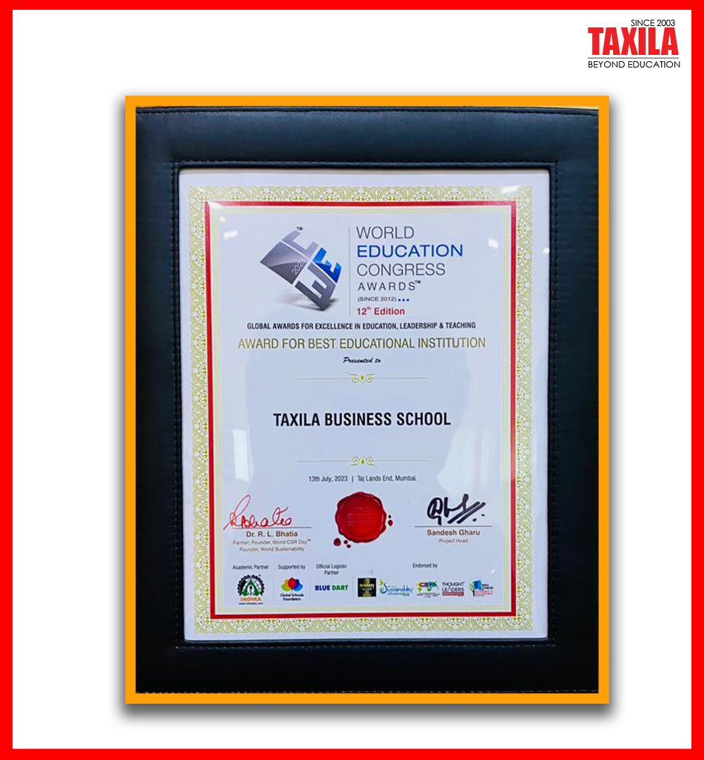 Taxila Business School conferred with World Education Congress Award for Best Educational Institution 2023.
